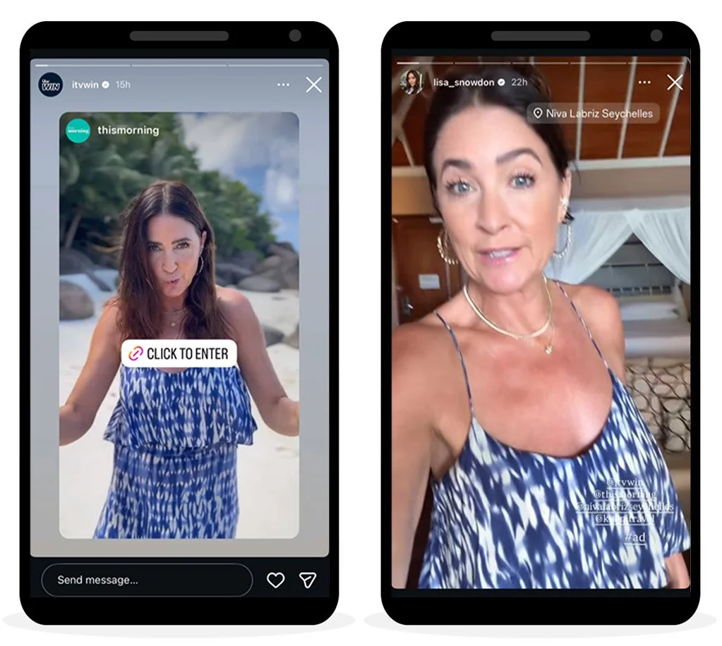 ITV Win socials posts and collaborative posts with Kuoni.